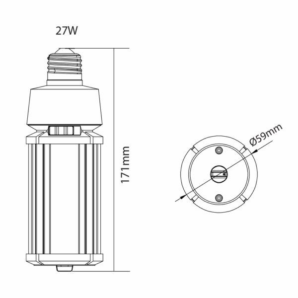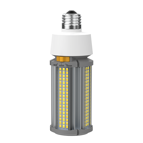 VIBE LED Corn lamps are designed as a practical, energy-efficient solution for replacing traditional high-intensity discharge (HID) lamps in commercial and industrial settings. Their distinct corn-shaped structure features multiple LED chips, providing bright, uniform illumination ideal for large spaces such as warehouses, factories, workshops and building with high ceilings. Each lamp includes a built-in color temperature switch, allowing you to choose between 3K, 4K, or 5K. The lamps operate at a maximum of 36 watts and deliver between 4680 and 5040 lumens, depending on the selected color temperature. A power-adjustable switch lets you set the output to 27W/18W/12W, helping manage energy use while maintaining light levels.