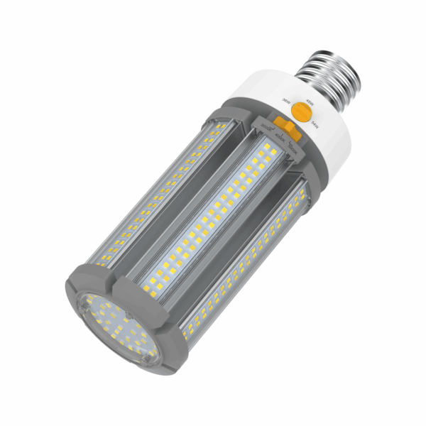 VIBE LED Corn lamps are designed as a practical, energy-efficient solution for replacing traditional high-intensity discharge (HID) lamps in commercial and industrial settings. Their distinct corn-shaped structure features multiple LED chips, providing bright, uniform illumination ideal for large spaces such as warehouses, factories, workshops and building with high ceilings. Each lamp includes a built-in color temperature switch, allowing you to choose between 3K, 4K, or 5K. The lamps operate at a maximum of 54 watts and deliver 7830 lumens based on 4000K, depending on the selected color temperature. A power-adjustable switch lets you set the output to 54W, 45W or 36W, helping manage energy use while maintaining light levels.